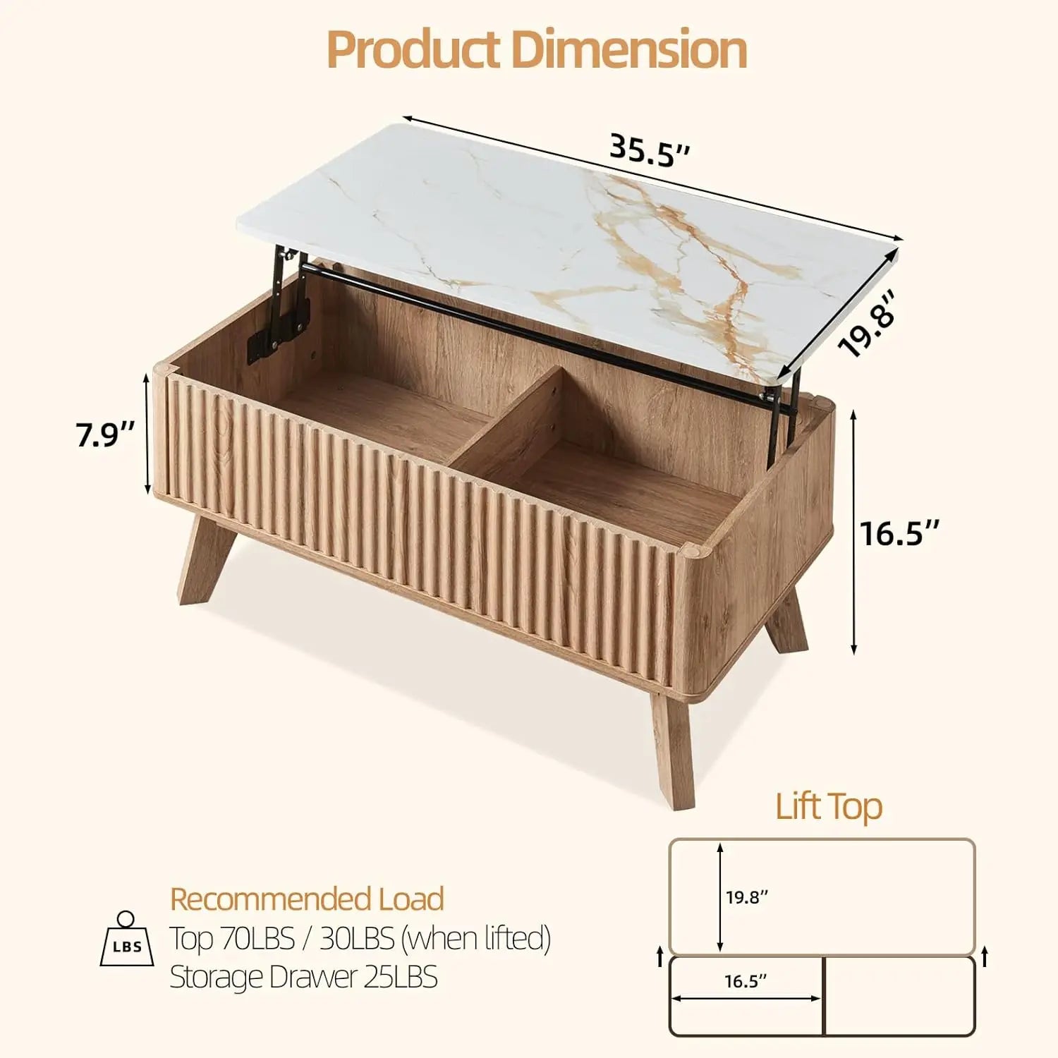 Cavo Marble Lift Top Coffee Table with Storage