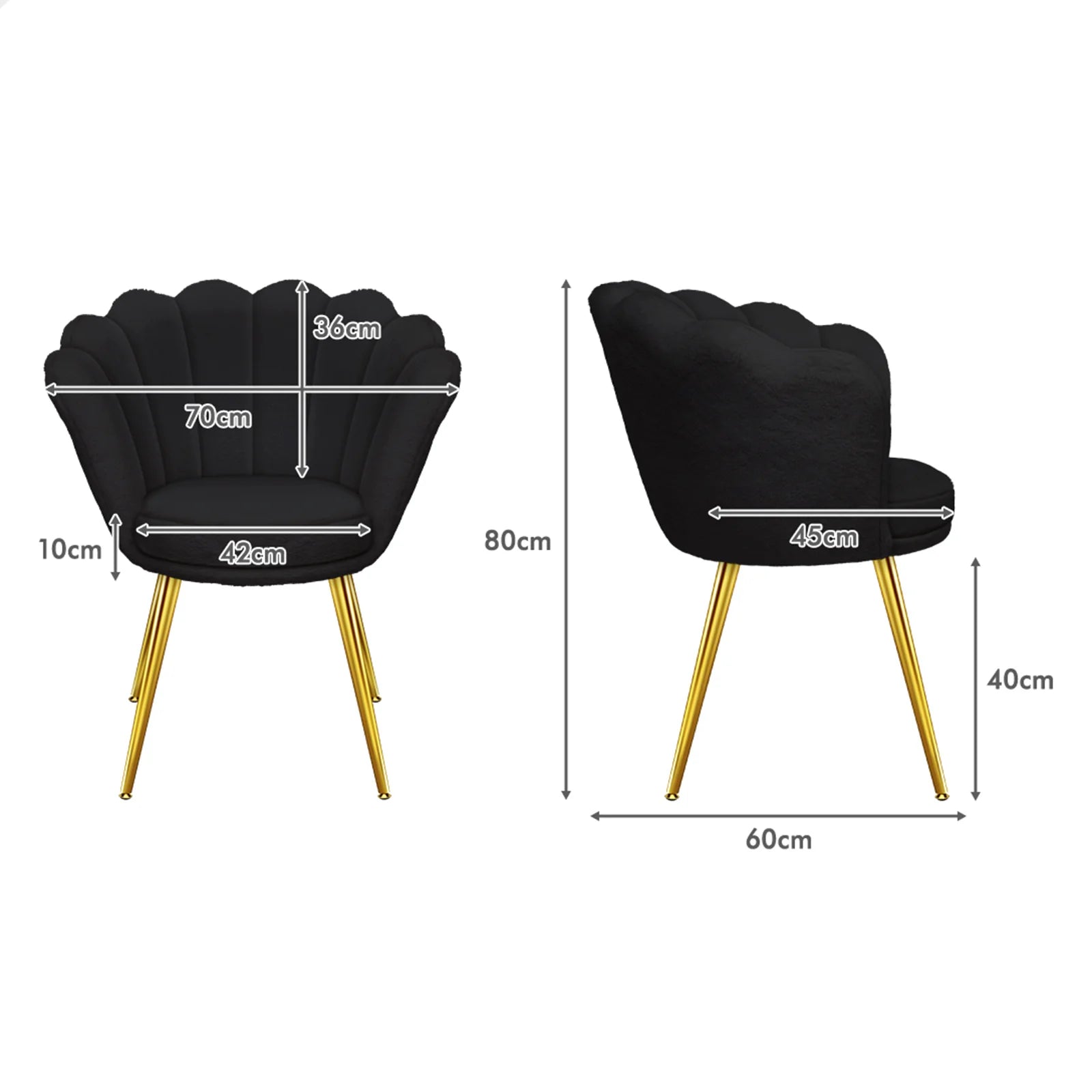 * Seat material: Soft velvet/ faux fur fabric, high density foam, metal frame and wooden board
