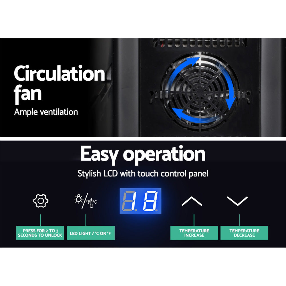 Need a good and reliable wine cooler? Look no further than our Devanti Wine Cooler. Utilising the latest high precision thermo-electric cooling technology, our wine cooler ensures your favourite vintages are well kept at their prescribed temperatures with its circulated cool air. The touch control panel makes for easy adjustments with temperature control and also includes a built-in LED light to help you see better. The stylish and compact design stores up to 28 bottles of wine in a neat and tidy shelving system. Better still, the dual-layer glass door is UV-resistant and a thick 30mm foam layer ensures the cooler is also well insulated. The ensemble works quietly and efficiently and has a handy child-lock on its control panel for total peace of mind.
