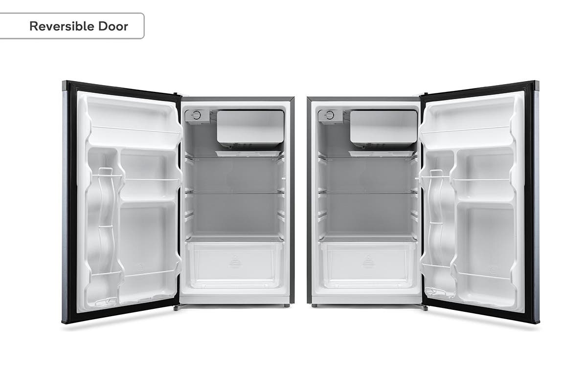 Perfect for apartments and office common areas, this compact and stylish fridge does the job of a full-size unit with a separate chiller compartment, crisper and reversible door.