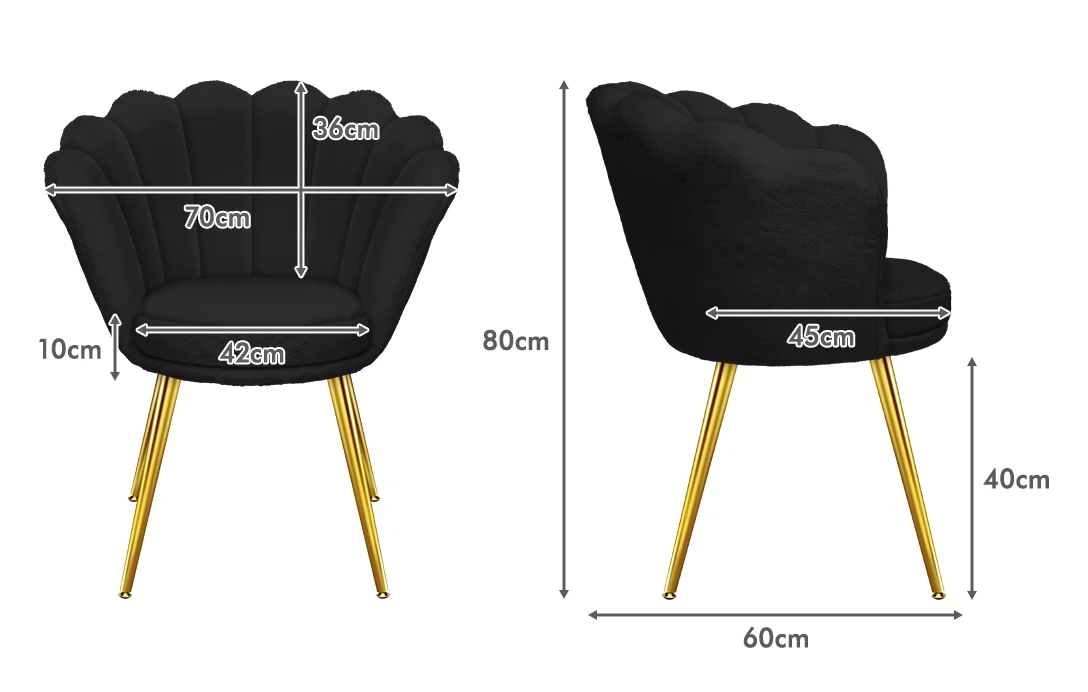 * Seat material: Soft velvet/ faux fur fabric, high density foam, metal frame and wooden board